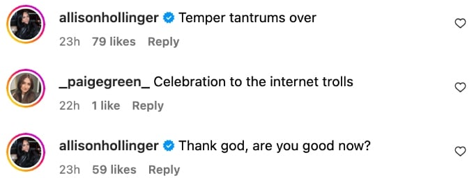 Her sister Allison seemed amused by the post and commented on it twice despite crying on the show when she realized Lauren had gone home.